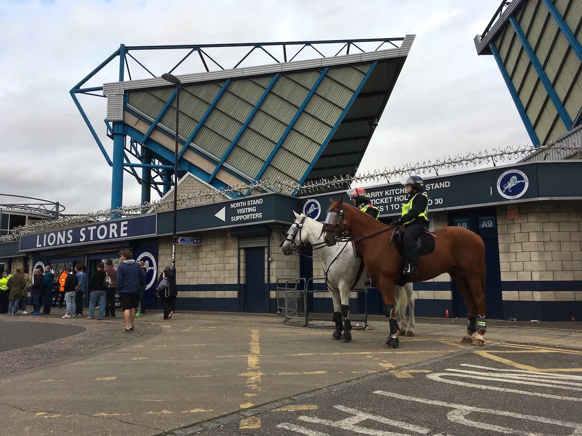 Nach der dritten Eisenbahnbrücke, unter der es besonders stark nach Urin stinkt, steht es da: das Stadion des legendären Millwall FC. Ein blau-weißer Betonbau, das Ziel meiner Träume. Deshalb habe ich eine Einladung zur 'Premiere League' ins Londoner Olympiastadion ausgeschlagen. Dort wo heute zeitgleich West Ham gegen Swansea spielt, die 'Kollegen' Tickets haben. Dem Anpfiff entgegen sehnen.