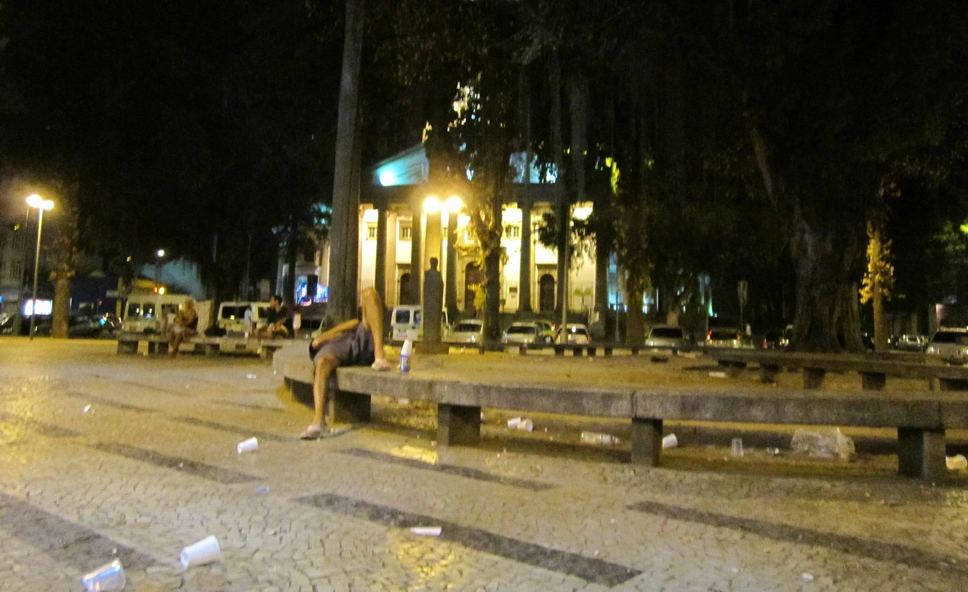 Irgendwann ist dann Lemé erreicht - die linke Seite der Copacabana. Hier ist es etwas ruhiger. Am Strand Grüppchen von Brasilianern, die es sich gemütlich gemacht haben. Mit Stühlen, Bänken, Tischen und Zelten. Silvester wird hier als Familienfest begangen - eine große Feier mit einem opulenten Abendessen dazu. Einige verbringen die Nacht auch hier. 'Gepullert' wird wie selbstverständlich ins Meer. Dazu ist es schließlich da. Dem Silvestertouristen sei eindringlich vor einem Bad am nächsten Tag hier gewarnt.